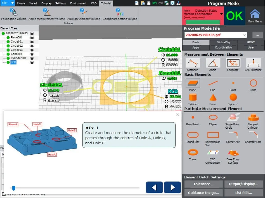 3D CAD exports of measured elements such as planes, circles, and cylinders
